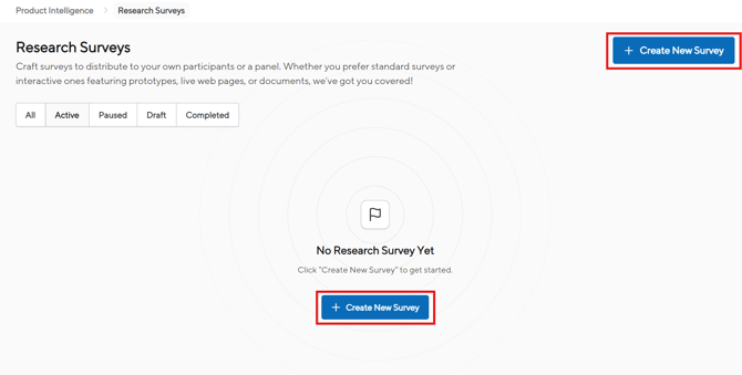 To get started with a new survey, or edit existing surveys, click on Research Surveys from the left-side navigation menu.
