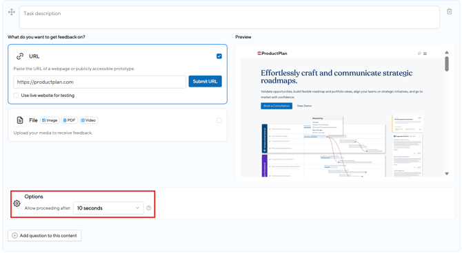 - You can require participants to spend a minimum amount of time on the content before they can advance to the next question.
