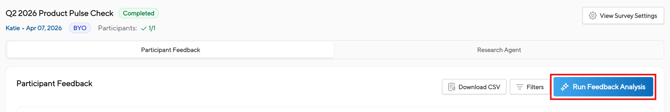 - Click Run Feedback Analysis at the top of the Participant Feedback tab.